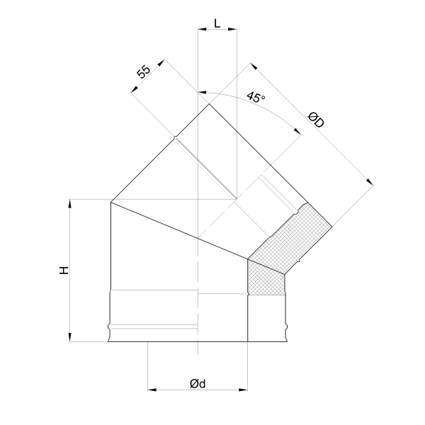 Материал внешней трубы – нержавеющая сталь AISI430 толщиной 0,5 или оцинкованная сталь 0,5 мм